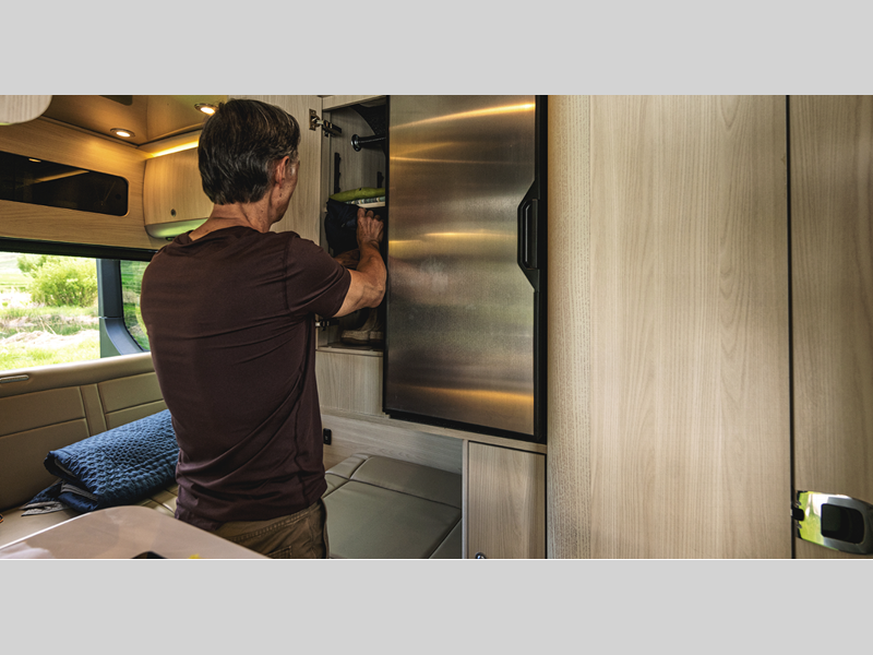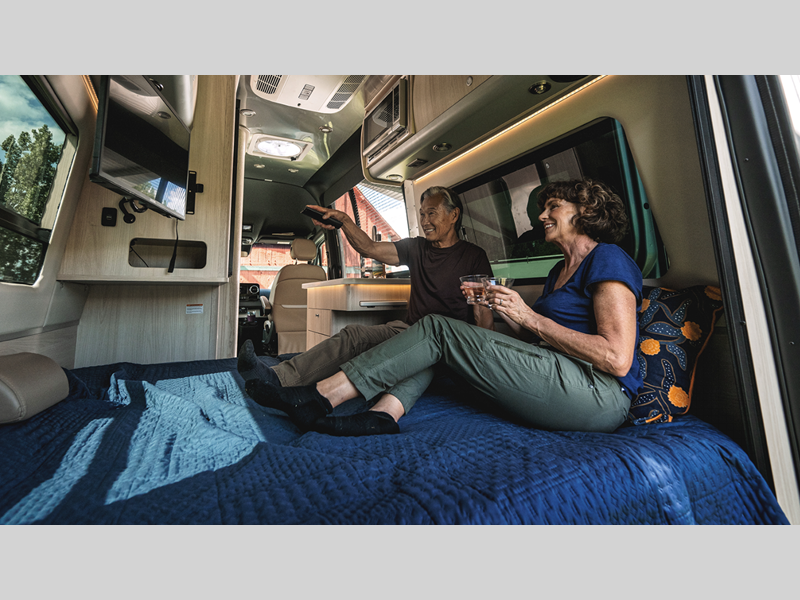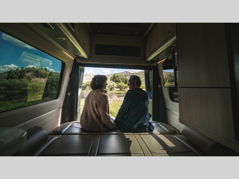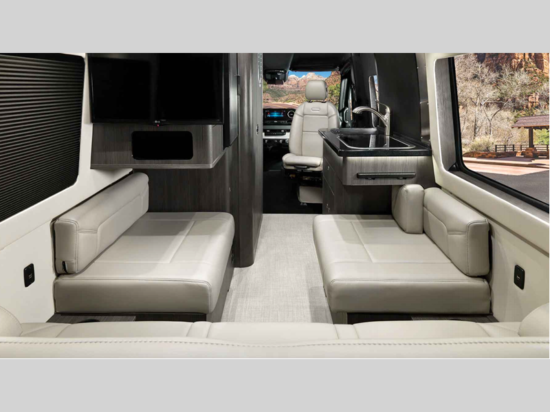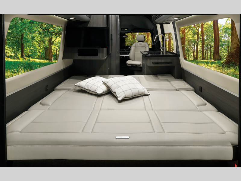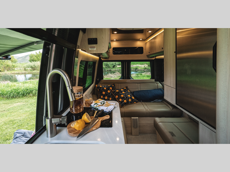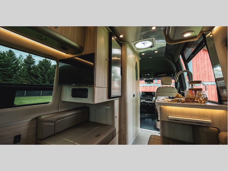 It all starts with a Mercedes-Benz Sprinter 2500 van chassis with a 2.0L 4-Cylinder high output diesel engine to power your adventures. The power sofa and side seats create the largest bed in its class, and the multiplex controls put you in control of the coach's functions with the push of a button. A spacious, versatile wet bath comes standard, along with a Corian kitchen countertop, Ultraleather seating, matte finish laminate cabinetry, and many more luxurious features.